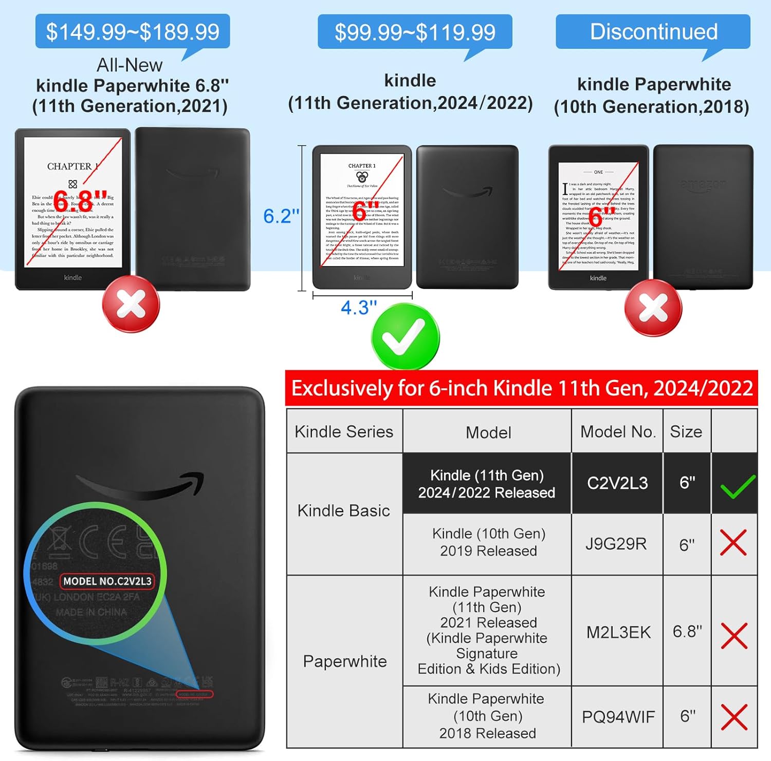 Fits Kindle 2024 & 2022 (11th Gen only)