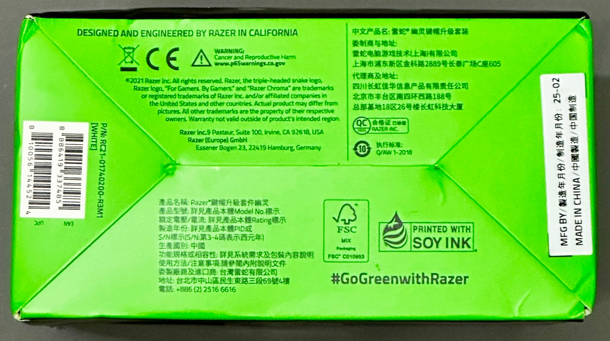 Razer Phantom Keycap Upgrade Set – Mercury White (128 Keys)