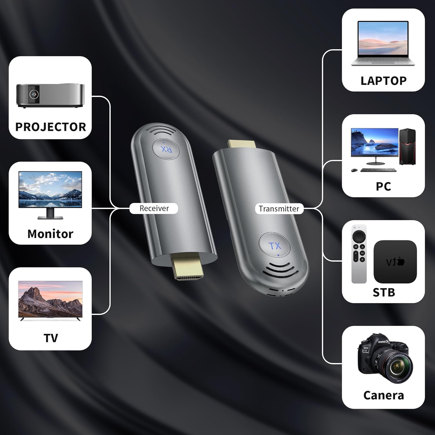 π Ultra HD Picture Quality: Supports 4K decoding and 1080P/60Hz output, delivering crisp, detailed images for work, education, gaming, and family gatherings. Note: Not compatible with mobile phones or tablets. If the computer does not supply enough power, please connect the transmitter to a 5V/2A adapter.
